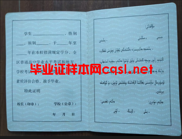 新疆新疆高中毕业证学位证样本图片